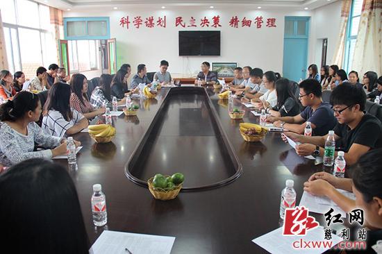 上午,该校举行见面会。参加大会的有校长、党支部书记、各部门负责人及高一、高二英语、美术老师和吉首大学带队指导老师、全体实习生。
