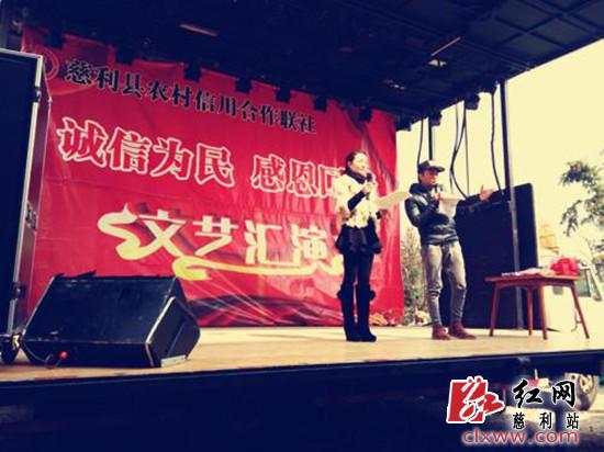 慈利新闻网3月12日讯(通讯员 周傲茹)3月12日,正逢慈利县景龙桥乡场期,一场文艺汇演为该乡的农贸市场增加了一份喧嚣和热闹,这正是该乡农村信用合作社为推动清贷工作进程举办的活动。
