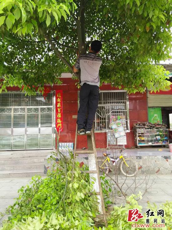 慈利县建设局对城区白宫城路行道树整枝修剪
