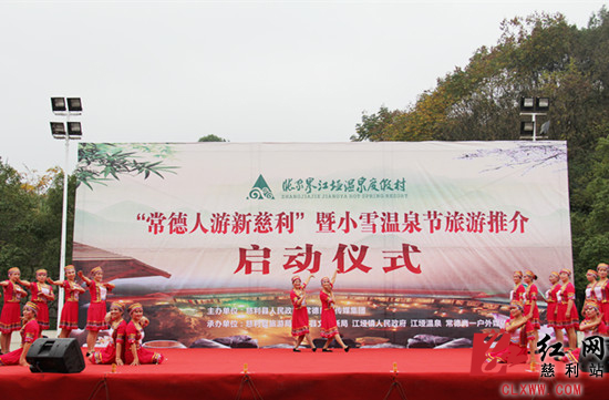 慈利新闻网11月23日讯(记者 李弘扬)慈姑妖娆多风情,小雪漫飞迎客来。11月22日,“常德人游新慈利”暨江垭小雪温泉节活动启动仪式在慈利县江垭温泉度假村举行。来自常德、慈利两地的宾朋相约一起,共同开启常德、慈利两地旅游发展新纪元,其情也深,其意也浓。慈利县委常委、常务副县长舒洪波,县委常委、县委宣传部部长朱超雄,常德市政府新闻办副主任、市政府新闻发言人徐礼美,常德日报传媒集团党委书记、董事长、社长蹇斯勇,以及常德、张家界等多家新闻媒体共同出席此次活动。
