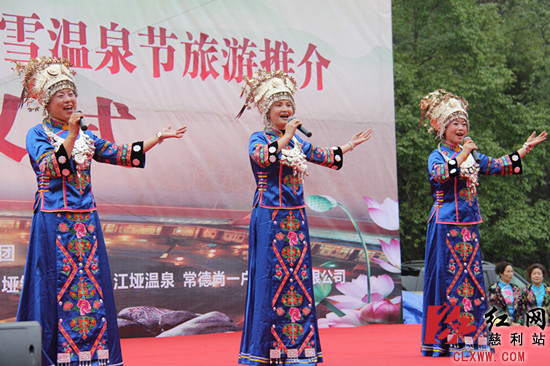 随后,参加活动的主要领导共同启动"常德人游新慈利”水晶球。仪式结束,文艺节目再续精彩。表演中,作为东道主的江垭村民率先“出征”,时下盛行的广场舞瞬间点燃现场氛围,独唱、合唱等唱出了慈利人民对远道而来客人的真诚与热情。婀娜多姿、顾盼生辉,便是形容由常德方带来的惊艳大餐----旗袍秀,只见举手投足间,道尽了典雅风韵。 风格迥异却亮点纷呈的节目,让在场的200多名常德市民与当地群众一起共享了一场视听盛宴。活动的举行,不仅是一次旅游体验,更体现出常德与慈利文化相融的拓展和升华,同时标志着慈利县与常德日报传媒集团合作进入“联姻蜜月期”。