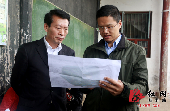 4月7日上午,湖南省发改委湘西处调研员杨林盛(左)一行来到慈利县阳和土家族乡鱼浦村的渔浦书院,对当地历史文化进行调研。随后,慈利县委副书记、县长高靖生(右)为其介绍并实地查看慈利的专项建设基金项目。