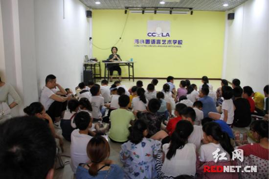 讲座上,戴萱就在6月9日上午举行的中传花少全国语言能力大赛张家界赛区决赛中孩子们存在的形体、音准、表情等问题进行了教育性示范,对逻辑思维、语言表达、细节等问题进行了现场指导。戴萱告诉孩子们要正视自己的问题,努力改正自己的问题。
