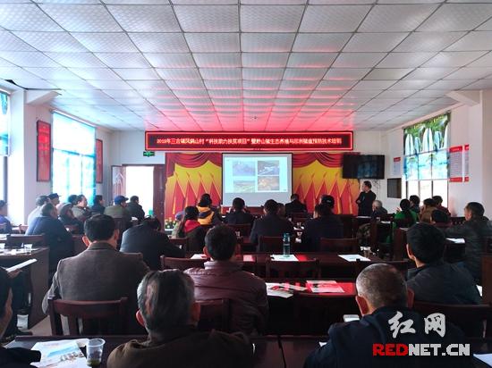 据了解,此次培训由三合镇党委政府、湖南省澧水公司驻凤鹤山村工作队、凤鹤山村村支两委、张家界九姆山生态农业有限公司联合举办,培训特邀了湖南粒丰生物科技有限公司的“科技扶贫专家服务团”前来授课。