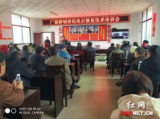红网时刻慈利3月28日讯(通讯员 胡凯)受冰冻天气影响,2018年底广福桥镇柑橘树大面积受损,为确保2019年柑橘产量,巩固脱贫成效,3月26日,广福桥镇政府在三丝村举办了“柑橘冻后修复技术培训”,这次培训邀请了县农业农村局专家进行授课,重点对全镇种植柑橘的建档立卡贫困户和种植大户进行专业技术培训。
