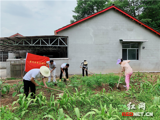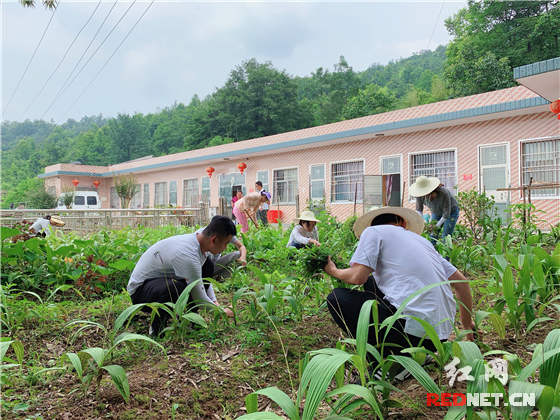接着,学员们来到了姚伯伯家中。姚伯伯家屋前屋后有好几块菜园,种植了很多草药和蔬菜。因姚伯伯劳动能力有限,带队的雷老师和全组学员们挽起袖子、拿起锄头,为其菜园除草。时至正午,炎炎烈日,大家汗流浃背,但学员们依然坚持要把杂草全部除掉才收工。 时间一点一点的过去,汗滴答滴答地流着,看到干净的菜园,主人脸上露出了会心的微笑。