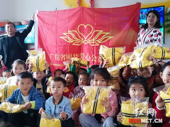 红网时刻慈利10月23日讯(通讯员 张媛 李霞)10月22日,阴雨绵绵天气寒冷,但杨柳铺中心幼儿园里却洋溢着温暖的气息,因为 “圆梦”爱心组织带着浓浓的爱心与关怀,走进该园为孩子们送来了爱心衣物。