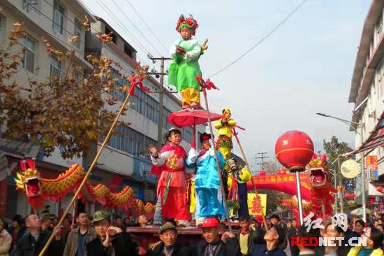 值得关注的是,九溪村独有的非遗项目“抬故事”此次也呈现给观众。九溪城的历史悠久,源远流长,“抬故事”属九溪古城独有的文化遗产,意为抬着一出故事,它以历史典故为题材,效果逼真,激动人心,是烘托节日、活动气氛的压轴戏。本次活动将这一古老的文化活动呈现出来,让更多的老百姓认识和了解了“抬故事”,对保护和传承非遗文化具有重要的意义。