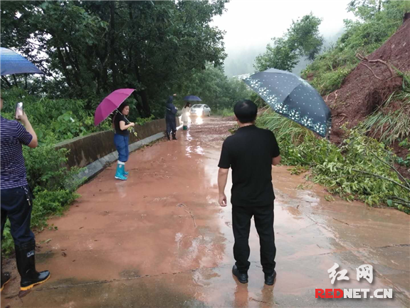 该镇纪检干部兼顾中心工作的同时,主动申请加入镇应急救灾行动,到危旧房、河道、塌方路段等地进行督查,到受灾严重的村(居)查看灾情。7月6日下午六点左右,当巡查至该镇白洋村时,白洋村陈家组发生大面积山体滑坡,镇纪委迅速与白洋村驻村工作队、村两委成员组成工作组,火速投身救灾一线,第一时间设置警示标志,及时转移涉险群众6户16人,并在道路中段路段设置路障,对危险交通路段进行管制与疏导,全力确保群众的正常出行和生命财产安全。