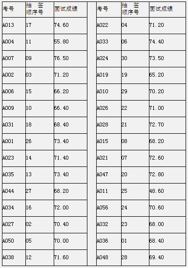 慈利县2012年公开选拔科级年轻后备干部面试成绩表