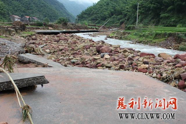 (慈利新闻网6月29日讯)6月25日晚上至27日,慈利县遭受特大暴雨袭击,据气象部门资料统计,截至27日07时,慈利24小时降雨量达到249.5毫米,为特大暴雨。这一降水量,在全国各地24小时降水量排名中位居第一。全县因暴雨引发洪灾,受灾严重。 广福桥等15个乡镇溪河护岸、交通道路、电信通讯、电力供电、供水等基础设施受到不同程度的损坏,省道、乡村公路严重受阻。广福桥镇境内四十八寨山洪爆发,致使区域内老棚等三个村遭受毁灭性袭击,成为重灾区。洪水导致两村八公里村道彻底毁坏,老棚村沿河12座桥垮塌11座,整条河河床升高,河流改道,还造成了山体裂缝,因为存在严重安全隐患,有两个组还无法进入。有的房屋被冲得无影无踪,有的房屋摇摇欲坠,农田淤满了泥沙,供电、供水设施遭受毁灭性打击。暴雨和洪灾给当地人民带来了严重的生活困难,村民在县、镇、村各级组织的带领下,积极恢复重建,开展生产自救。