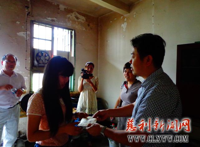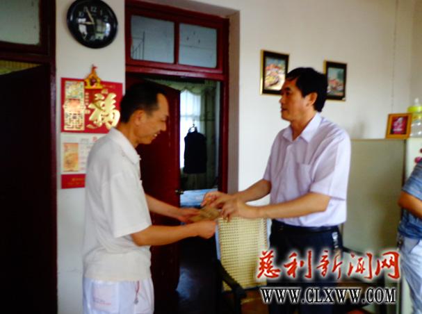 县委常委、县委组织部部长秦清龙在县建筑公司贫困职工家中发放助学金