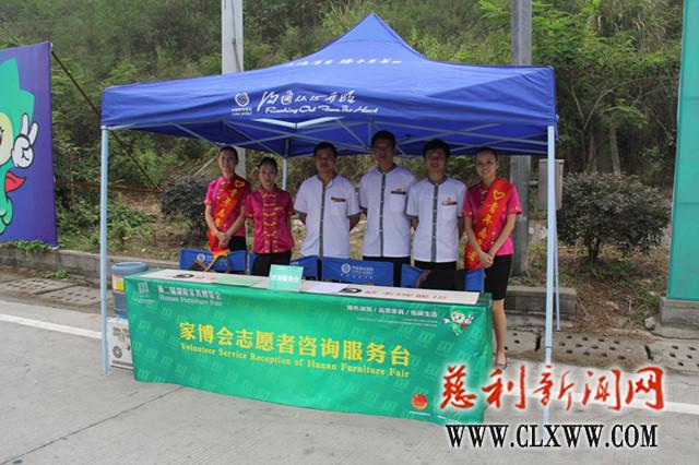 在高速公路慈利东出口,早上8点到下午6点,志愿者身着志愿者服装,身披绶带,每班6人轮流值班,为过往车辆提供交通、旅游咨询和饮用水服务。当客人提出疑问后,他们耐心、细致地解答,主动地介绍慈利风土人情和旅游景点,向客人发放家博会和县情宣传资料,直到客人满意地离开。公路旁边灰尘多、风沙大,一天下来,志愿者的头上、脸上都是灰尘。