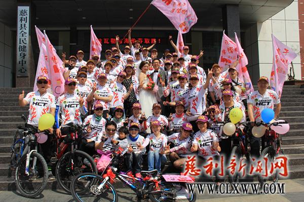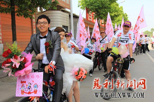 副标题:我县骑行婚礼亮相街头 50多名骑友送祝福