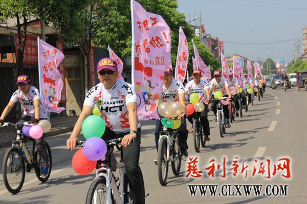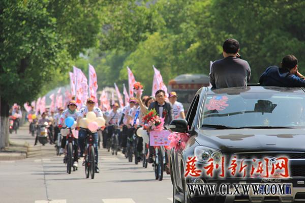 慈利新闻网讯【记者 王杨】没有常见的豪华迎亲车队、没有热闹喧天的锣鼓鞭炮,4月27日,一支特别的迎亲队伍穿城而过,醒目的标语、缤纷的气球、飘扬的彩旗,一个由50多辆自行车组成的迎亲车队出现在我县城区街头,形成一道靓丽的风景,这样别具一格的“骑行婚礼”一路上着实赚足了人们的眼球。