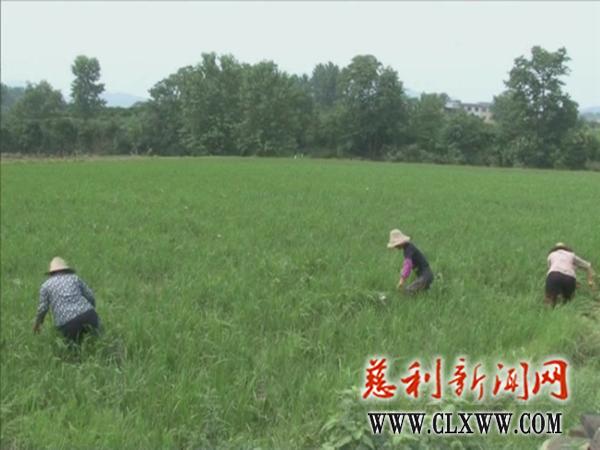 “在昨天6月6日的大暴雨造成了洪水陡涨,地洼地区全部水淹,达1.5米深,但是时间不太长,大约淹了4个多小时,但现在主要的是浪渣和洪水冲的凼,对早稻影响比较大,因为早稻关键是怀胎期,所以我现在根据这个形式采取措施,进行抗灾自救”万福村土地流转大户夏泽林说。