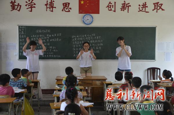 “我相信自由自在,我相信希望,我相信伸手就能碰到天”,7月15日下午,在国太桥乡九年制学校的礼堂里,来自湖南师大商学院的小老师们正在教小学生们唱歌和手语。这些小学生都是听说有师大的哥哥姐姐们要来支教,纷纷自愿过来上课的。吴辉是一名四年级的学生,在音乐课上,他唱得格外卖力。