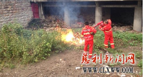 图为 苗市镇林业站工作人员正在进行森林火灾扑救模拟演练
