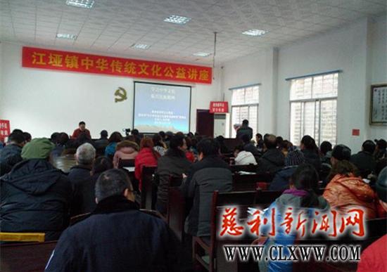 慈利新闻网12月20日讯(通讯员 向琪 唐力)为了进一步弘扬中华民族的传统文化,完善公民自身的道德建设,12月17日,慈利县江垭镇举办了一次中华传统文化公益讲座,针对公民道德建设问题进行了深刻剖析。江垭镇政府、部门的干部职工、村居支两委成员、街道及周边村的部分群众共200多人参加了此次讲座。