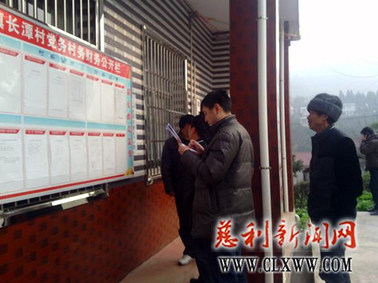 —分享— 慈利新闻网12月24日讯 (通讯员 汤雅莉)12月23日上午,慈利县村务公开领导小组来到该县溪口镇检查村务公开工作。检查组查看了该镇一年来关于开展村务公开工作的各项文件和纸质档案,翻阅了镇村务公开会议记录和村干部培训记录,并严格按照考核标准对该镇的村务公开工作进行了打分。随后,检查组来到了长潭村村部对村务公开工作进行了仔细检查,翻台帐、查记录、观公示栏,在全面了解了该村村务公开工作的落实情况后,对长潭村村务公开工作取得的成效给予了肯定。 来源:慈利新闻网 作者:汤雅莉 编辑:redcloud