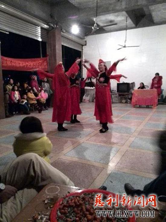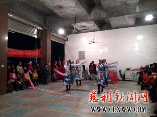 该乡政府负责人到场为女子军鼓队致贺词,并向前来观看晚会的群众送上新春祝福。晚会的节目内容丰富多彩,有舞蹈、土家花灯、花鼓戏、独唱等,这台晚会增加了新春节日的气氛,活跃了节日期间群众文化生活。