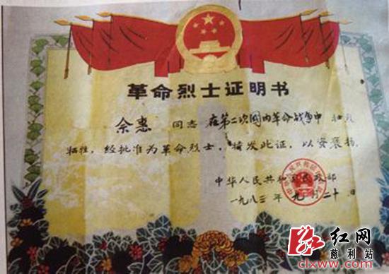 佘惠,慈利县甘堰土家族乡坪溪村人,曾任红七军政治部秘书科长、秘书长、55团政委等职,有“军中秀才”的美誉。1932年,佘惠在江西中央革命根据地作战中牺牲,年仅36岁。1945年,在中共“七大”会议上,毛泽东同志亲自追认他为革命烈士。