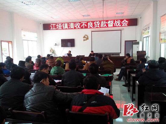慈利新闻网12月18日讯(通讯员 刘钊 胡娟)为进一步加大农村信用社不良贷款清收及责任追究力度,有效推动不良贷款清收工作,12月16日,江垭镇召开清收不良贷款督战会,镇清收领导小组成员、全体政府干部及各村(居)支部书记、报账员参加了会议。
