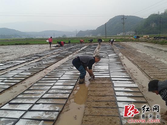 慈利新闻网4月1日讯(通讯员 范新颜 李辉)3月31日,在慈利县通津铺镇燕子居委会的一片水稻田里,慈利县实干农机专业合作社正利用大好天气进行早稻育秧。在育秧田中,只见操作人员在每个育秧盘中都放置了一块薄薄的、像白纸一样的东西,经咨询现场的农机技术人员,原来这是一种叫做“麻育秧膜”的新技术。使用麻育秧膜,具有能有效固定秧苗、育成的秧苗根系发达、利于机插秧早插、早发、高产等优点,能显著提高水稻机插效率和质量。