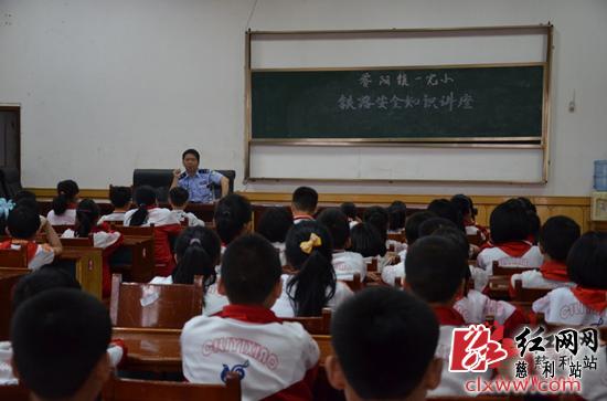 派出所马警官从三个方面讲述了铁路安全常识和有关铁路安全法规。一是讲述了电气化铁路速度快、惯性大、高电压等特点。重点讲述了县域内焦柳铁路客车一般在每小时100至120公里,铁路上高压接触网是普通照明用电的100多倍等,教育学生远离铁路。二是用生动鲜明的县域内焦柳铁路案件对轨面摆放障碍、击打列车、折盗铁路器材、提车钩与关闭折角塞门等。三是对学生提出了八点要求,确保人身和铁路运输安全。