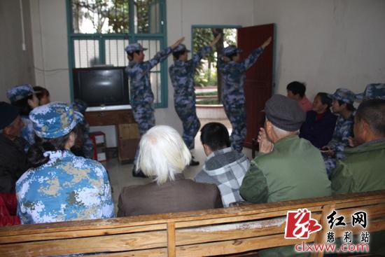 部队官兵到达光荣院后,顾不上休息随即忙活开来,他们分工明确,有的负责擦玻璃,打扫院落卫生;有的帮助老人剪指甲、梳头;有的叠被子,整理床单……个个忙得热火朝天,干完了活,官兵围绕老人们的身边,关切地询问老人们的生活、身体情况,和老人们聊天,谈理想,听老人们讲述当年参加革命的光荣岁月,最后官兵们为老人表演精彩的文艺节目。