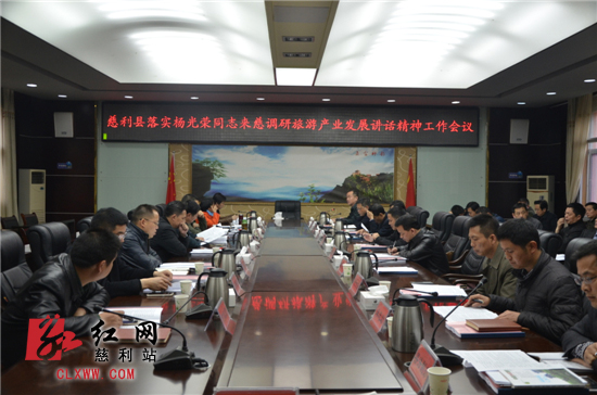 慈利新闻网3月23日讯【记者 杨玥妙楠】3月23日,慈利县召开落实杨光荣同志来慈调研旅游产业发展讲话精神工作会议。慈利县委书记邱初开主持会议,高靖生、赵群策、吴淑元、潘远忠、吴清英、朱超雄、孙罡、钟佳君等县领导参加会议。