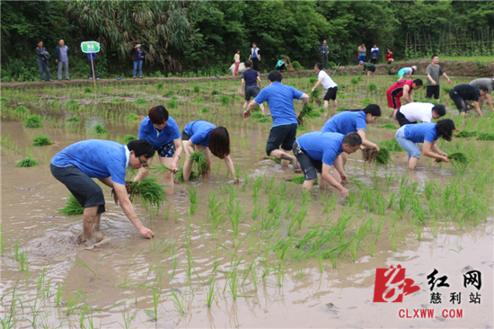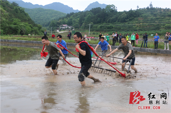 认筹活动结束后,大部队前往百寿村开心农场,亲自下田体验插秧农活,犁地、插秧、糊仓(土家族的一种民俗,寓意风调雨顺农作物丰收),在崭新的百寿村村部进行运西瓜接力赛、拔河比赛,热闹非凡。