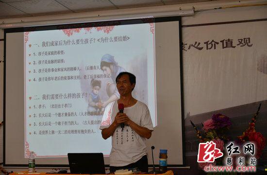 象鼻嘴村传统文化教育的主讲者——向亮华老师作题为《家庭、家规、家风是成就人生的重要法宝》的演讲,用通俗易懂的语言深入浅出地告诉大家在家、在单位、在社会上如何做到礼孝、如何教育孩子、如何感恩他人、感恩社会,将中华民族传统文化传承下去。