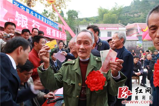 慈利县新农保养老金首发式上,群众喜领养老金