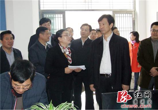 省政府副省长蔡振红来我县调研,图为视察零溪镇经管和社会保障服务站