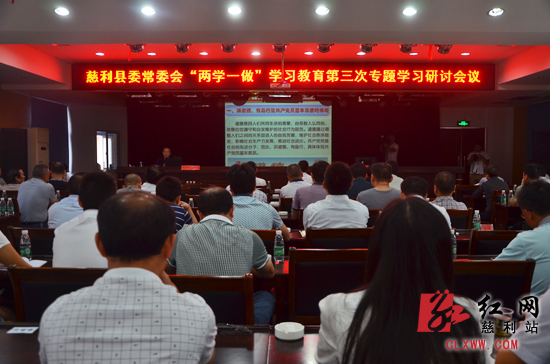 慈利新闻网9月23日讯【记者 王杨】9月23日,慈利县委常委会“两学一做”学习教育第三阶段专题学习研讨会暨县委常委中心组2016年度第六次理论学习(扩大)举行,邱初开、舒洪波、赵群策、吴清英、朱超雄、潘志明、覃业成、欧兵波等在家的县领导,全县所有在职处级干部,各乡镇党委书记、乡镇长,县直正科级单位党政负责人,党校骨干教师200余人参加学习。