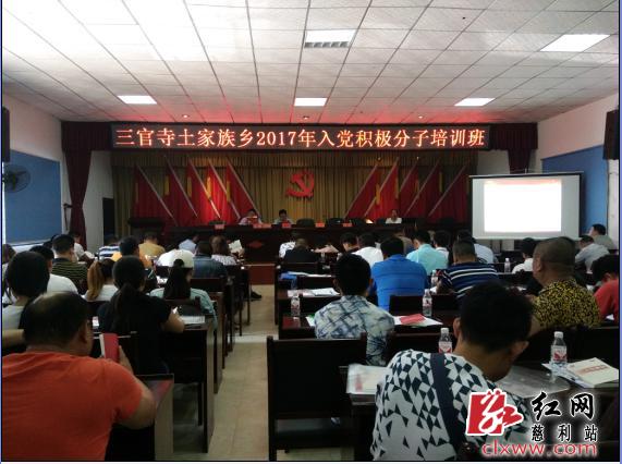 红网慈利分站5月31日讯(通讯员 郝晓洁)5月27日,慈利县三官寺土家族乡举办2017年度入党积极分子培训班,全乡23个党支部书记和80多名入党积极分子参加,参训学员年纪轻、学历高、态度端、动机纯成为培训班的亮点。