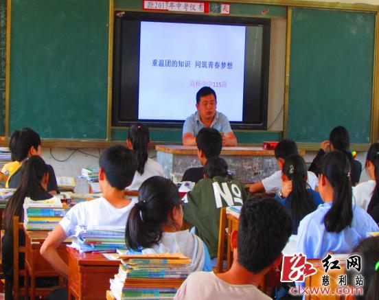 红网慈利分站6月1日讯(通讯员 朱国华) 高扬理想风帆,焕发青春激情。近日,慈利县高桥镇中学政教处、校团委精心安排,统一部署,认真组织举行了“重温入团誓词,放飞青春梦想”为主题的讲团课班会活动。