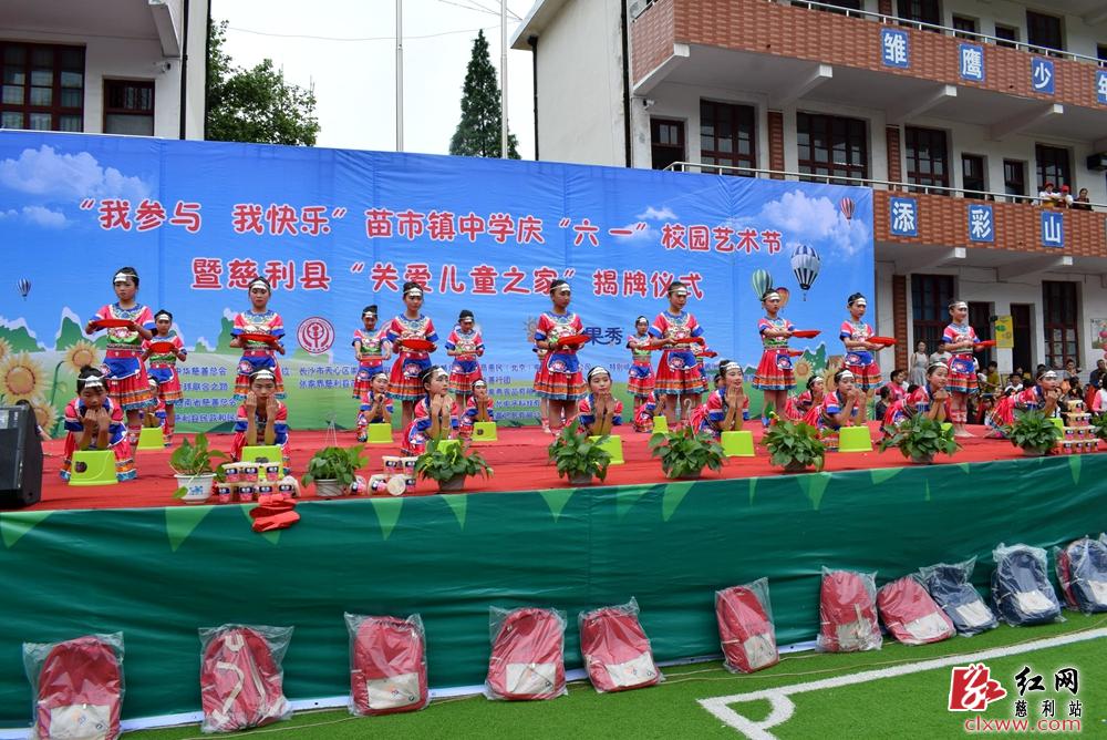 红网慈利分站6月2日讯(通讯员:向绪贵)六月如歌,粽香沁人。6月1日,近二千名师生和家长云集慈利县苗市镇中心完小,天空中的绵绵细雨滑落在皮肤上,虽然透着阵阵凉意,却阻挡不了了社会各届群众欢度校园艺术节庆“六一”的热情。