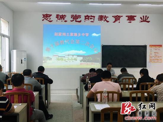 会议首先全体起立奏唱《国歌》。接着赵家岗土家族乡中学胡校长指出教代会的召开意在不断推进学校的改革与发展,促进学校教育教学稳步提升, 体现公平公正,并对本次教代会提出要求和希望。然后代表讨论和审议《赵家岗土家族乡中学教师专业技术职务竞聘实施方案》、《赵家岗土家族乡中学教学质量奖惩绩效方案》,与会代表分别对以上个别方案和办法制度进行了热烈的讨论,并就教师普遍关心的热点和难点问题提出了意见和建议。代表经过激烈讨论、主席团会议形成决议(草案),与会人员举手表决一致通过,大会在雄壮的《国际歌》声中胜利闭幕。