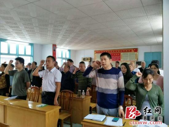 红网慈利分站6月16日讯(通讯员 李红)“我志愿加入中国共产党,拥护党的纲领,……”6月15日,在慈利县零阳镇白云社区的会议室里,第一党支部的党员们正在重温入党誓词。