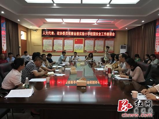 随后在金慈小学召开了校园安全工作座谈会,代表、委员们分别听取了一鸣中学、金慈实验小学负责人的工作情况汇报,充分肯定了一鸣中学、金慈实验小学在安全工作方面作出的努力和成效。座谈会上,代表、委员们认真履职、踊跃发言,纷纷在平安校园的建设上发表了宝贵意见,同时要求学校一定要把校园安全工作作为所有工作的重中之重来抓,认清当前安全生产严峻形势,克服麻痹思想,严格落实安全工作责任;加强隐患排查力度,做到立查立改,消除安全隐患,切实做到校园安全不留死角、没有盲区;强化学生全面的安全知识教育,全面提高师生和家长的安全责任意识,使社会、家庭及学校形成一条强有力的安全防线;建议各职能部门密切配合,齐抓共管,着力构建政府、社会、学校、家庭四位一体的坚强管理堡垒,为孩子们健康快乐成长撑起一片蔚蓝的平安天空。