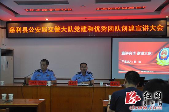 红网慈利分站8月15日讯(通讯员 向薇)8月14日,慈利县公安局交警大队召开党建和优秀团队创建宣讲大会,全体民警、协辅警参加会议。