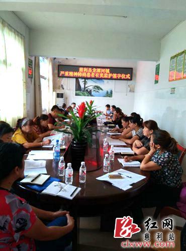 红网时刻9月14日讯(通讯员 吴志华 黎圣贵)9月13日,慈利县龙潭河镇召开严重精神障碍患者有奖监护签字仪式,龙潭河镇政府、龙潭河镇综治办、龙潭河镇派出所、民政所、劳保站、财政所负责人及各村(居)卫计专干参加会议。