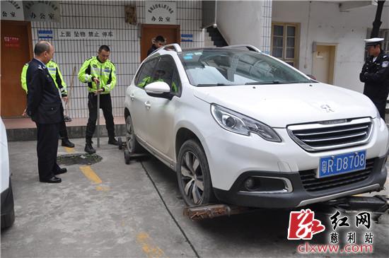 红网时刻10月15日讯(通讯员 向薇)10月11日,慈利县交警大队秩序股民警在某单位内查扣一辆白色东风标致套牌车。10月10日上午,广东的一位驾驶员向慈利县交警大队报案,称他的粤RD8707白色东风标致越野车被人套牌了,套牌车和他的车一模一样。大队确认报案人所述为事实后,民警随即将套牌车的信息及照片发到微信群,请各中队注意查扣。同时,指挥中心将此车录入缉查布控系统内,开始追查。