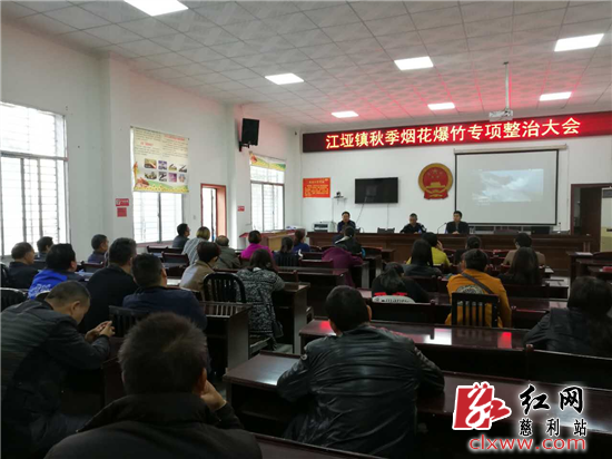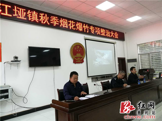 红网时刻10月27日讯(通讯员 易俊杰)10月27日,江垭镇召开了《江垭镇秋季烟花爆竹专项整治大会》,对江垭镇的烟花爆竹整治情况进行了通报。会议通过播放烟花爆竹安全事故视频,向全镇所有烟花爆竹经营者及各村负责人敲响了安全经营的警钟。