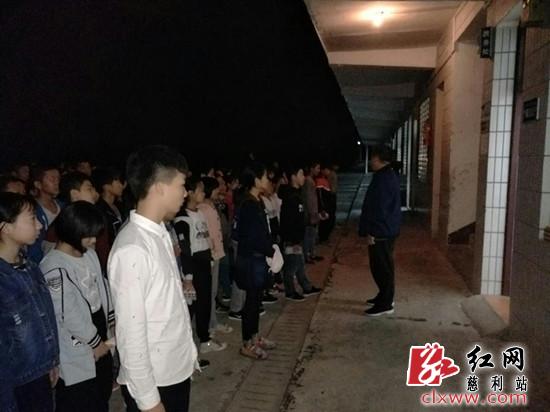 夜间演练组织更加周密细致。晚8时20分,演练警铃再度骤然响起,男女寝内学生分别沿着各自应急疏散路线快速有序撤离寝室,各楼层引导员、寝管员、值周教师及值日行政人员紧急就位,密切配合,不到3分钟,全体学生安全撤离“火灾”现场至操场。整个演练过程前后衔接连贯,未造成丝毫混乱局面,取得了预期的效果。
