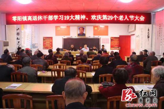 红网时刻10月29日讯(通讯员 正彬)10月28日,上午9时,正值重阳节,零阳镇党委组织退休干部举办第29个老人节大会,会议宣读了党的十九大重要讲话内容,传达学习了十九大精神,向每一位退休干部送上了祝福,祝老干部身体健康,节日快乐。