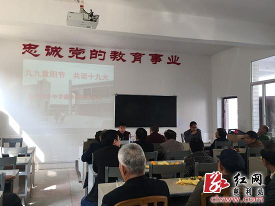 期间,退休教师与在场的校委会成员聊起了已经胜利召开的党的十九大,“不忘初心,牢记使命”“ 习总书记在十九大报告中也提出了优先发展教育,作为一名退休党员教师能够在有生之年有幸目睹国家和当代领导人为实现中国梦不懈奋斗”退休党员赵老师激动的谈论着个人对十九大胜利召开的看法。在座的退休教师和校委会成员也纷纷表示国家对农村教育越来越重视,真心感谢国家为我们撑起一片和谐、安宁的教育天地。会后,还组织离退休老教师参观学校校园,共同感受学校的新变化,并安排中午,学校行政人员与老教师们共进午餐。