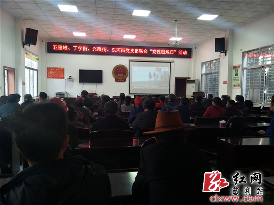 红网时刻11月2日讯(通讯员 杨锋)11月1日,江垭镇五里堆村,丁字街、东河街、兴隆街3个居委会,总计四个农村党支部,在江垭镇政府联合开展了“党性锻炼日”活动,100余名党员参加活动。